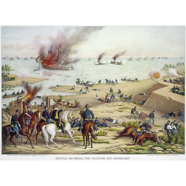 / Monitor Vs Merrimack, LND77257X Civil War Monitor & Merrimac - Merrimack the merrimack the monitors pilothouse was eventually hit and it then sheered into shallow waters.